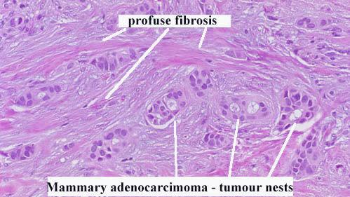 Profuse fibrosis in mammary adenocarcinoma.